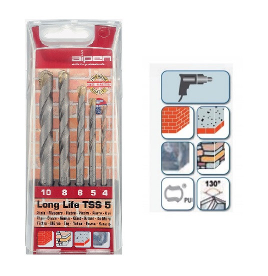 ALPEN súprava vrtákov do kameňa HM Long Life vrtáky ø 4-10 mm 5 dielov